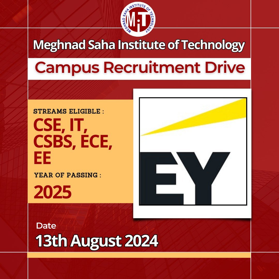 Ernst & Young campassing 13th August 2024 , for CSE, IT, CSBS, ECE, EE , 2025 passout